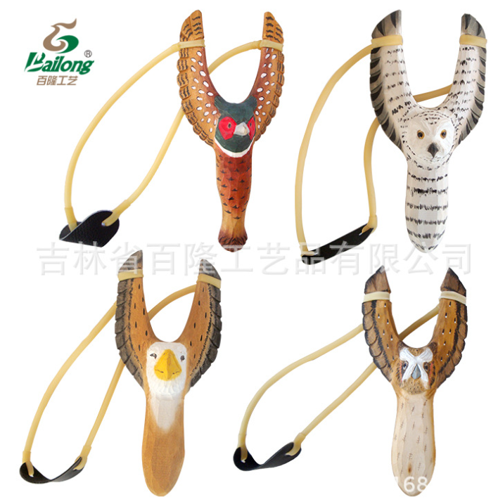 厂家定制创意木雕动物弹弓手工彩绘原实木弹弓库存儿童玩具弹弓