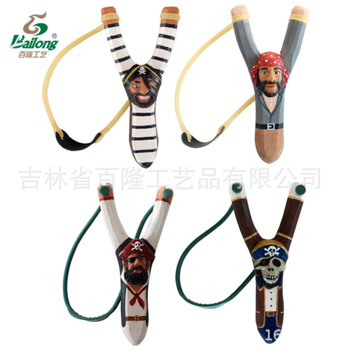 现货库存创意木雕海盗弹弓手工彩绘原实木弹弓儿童玩具弹弓