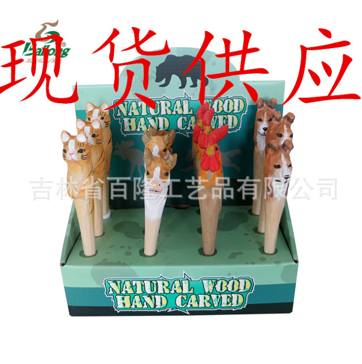 现货库存木雕动物笔创意手工木头笔景区热卖圆珠笔木雕笔