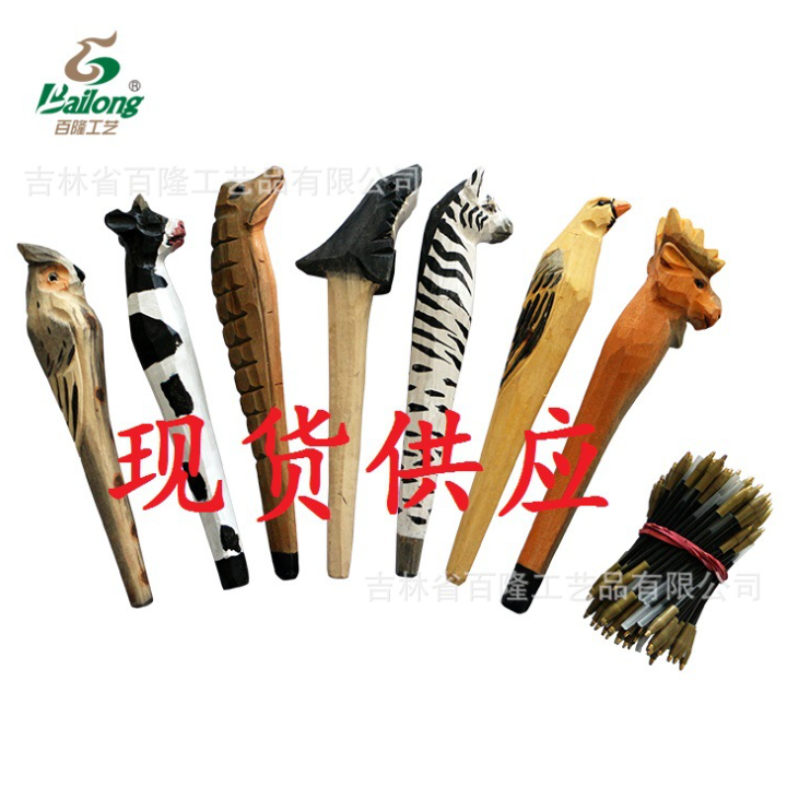 创意木雕动物笔库存手工木头笔木质工艺礼品笔景区热卖圆珠木雕笔