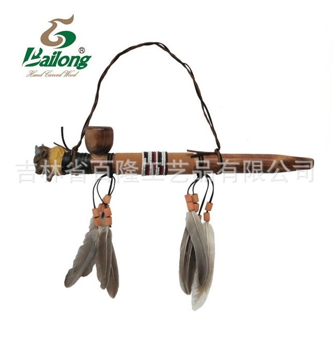 厂家直销木制工艺品礼品烟袋手工雕刻动物头烟袋装饰品景区纪念品