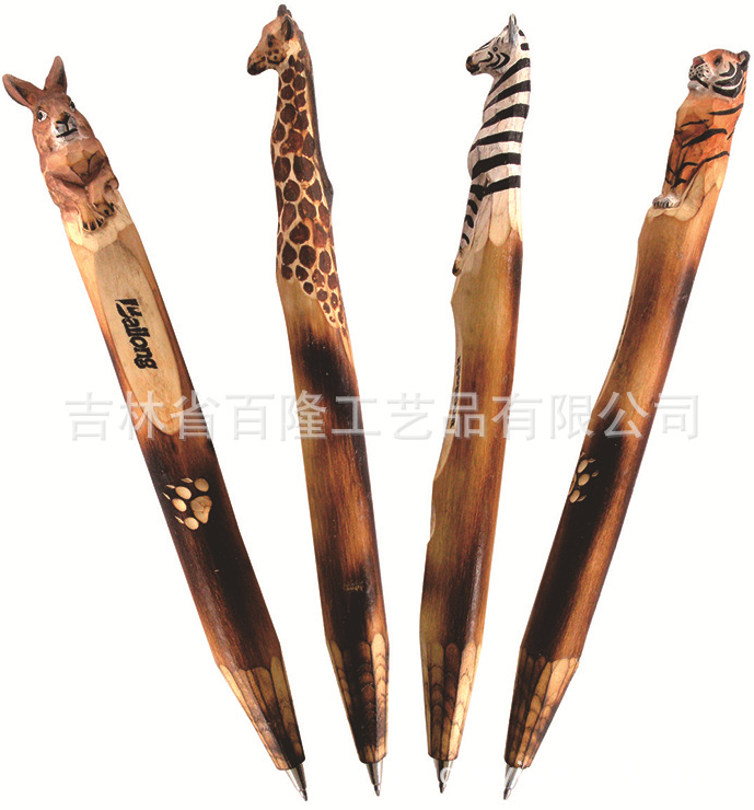 创意木雕动物笔定制手工木头笔木质工艺礼品笔景区热卖圆珠木雕笔