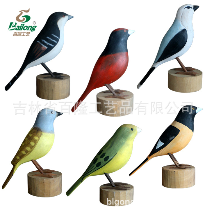 厂家定制手工雕刻木质鸟家居装饰木雕鸟摆件现代客厅电视柜鸟摆件