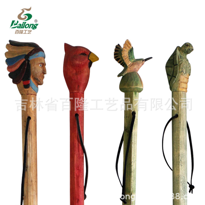 户外登山实木拐杖手工雕刻老人手杖动物酋长木制手杖老人拐杖
