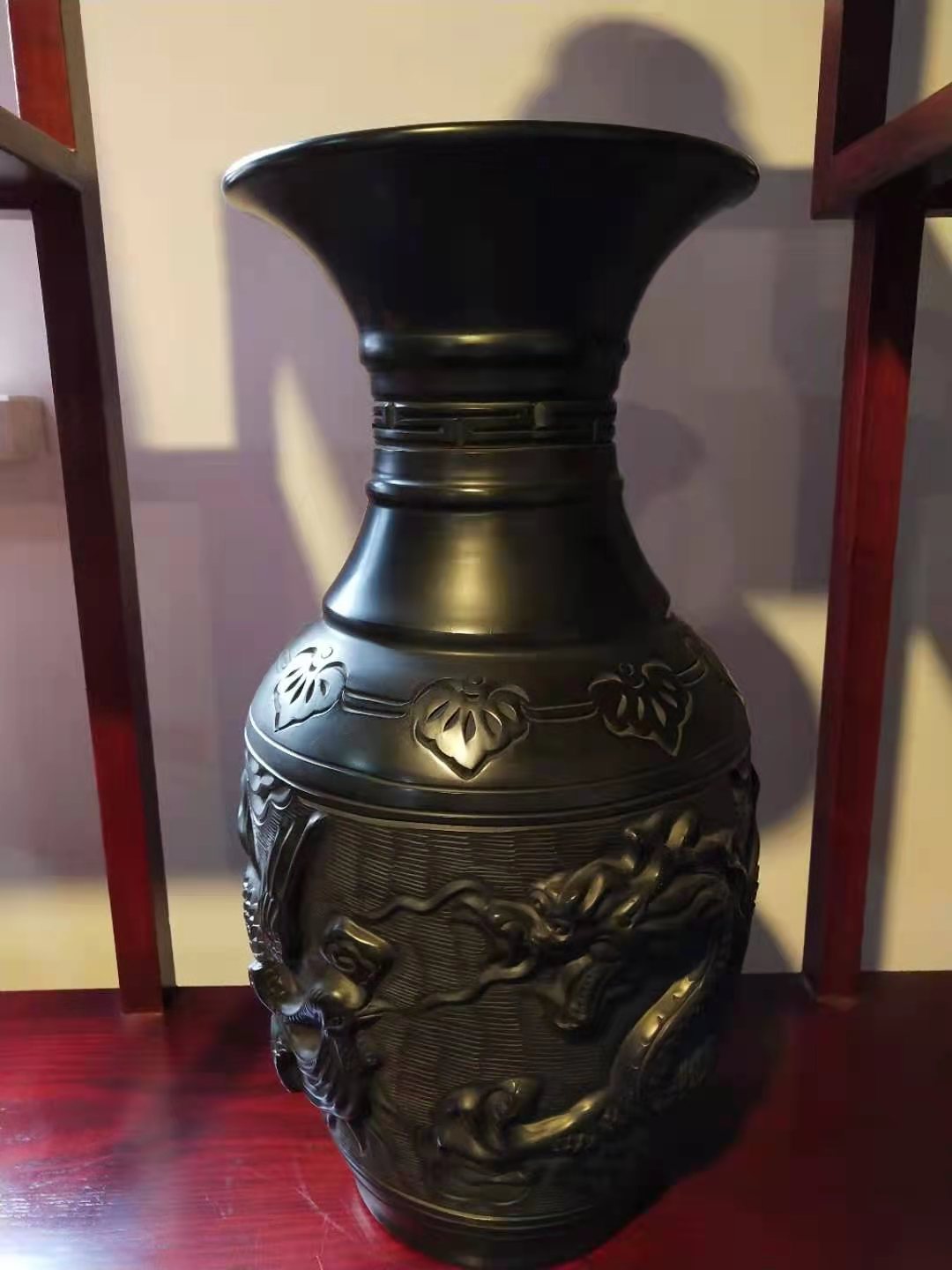 黑陶浮雕瓶龙凤呈祥