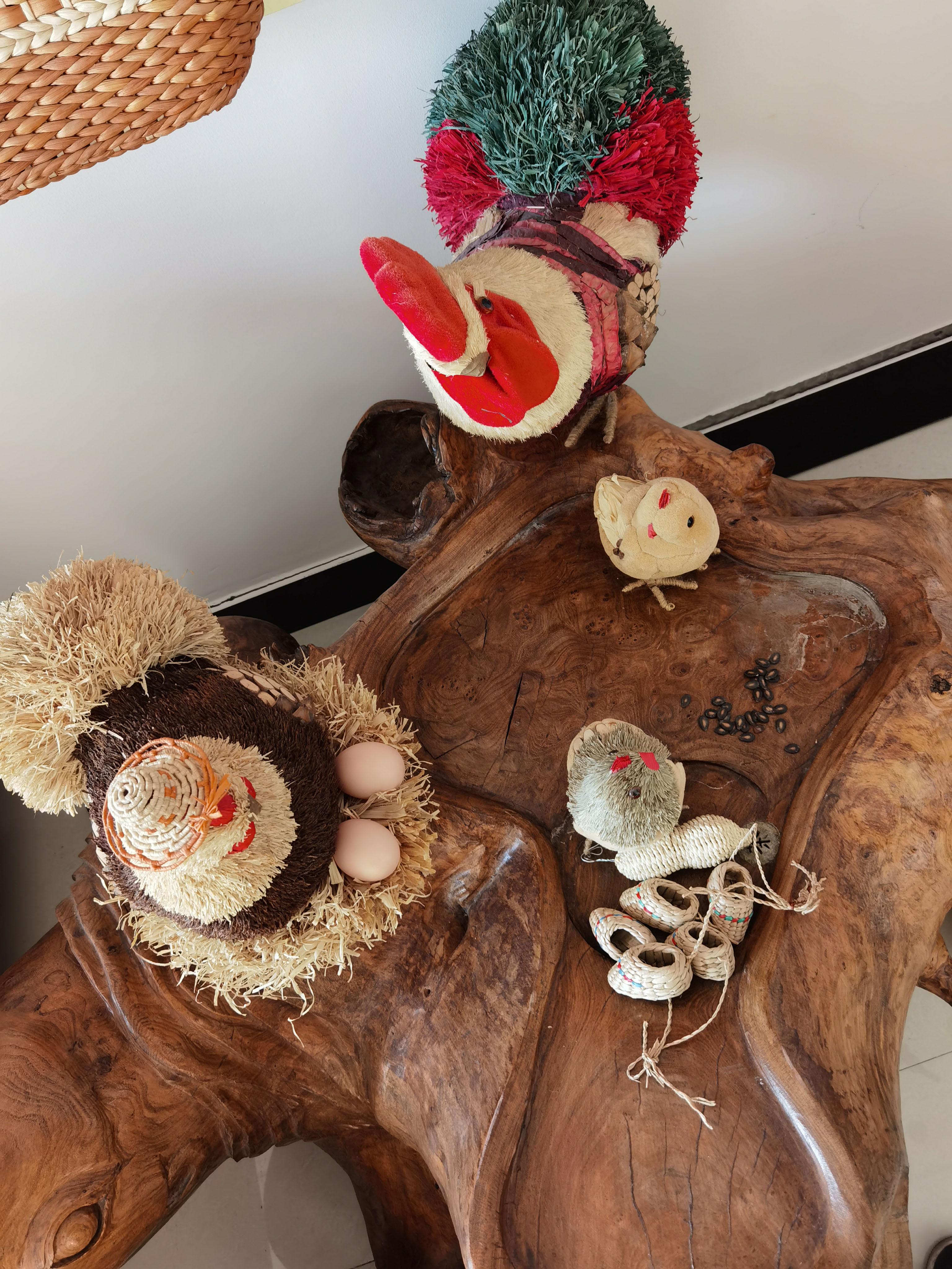 草编鸡摆件