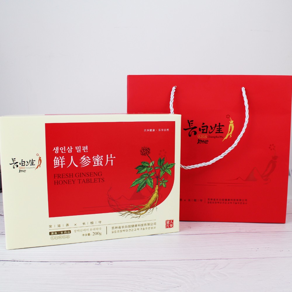 长白娃新款人参生晒土鲜参红参液浓缩口服液蜜片礼盒装200g