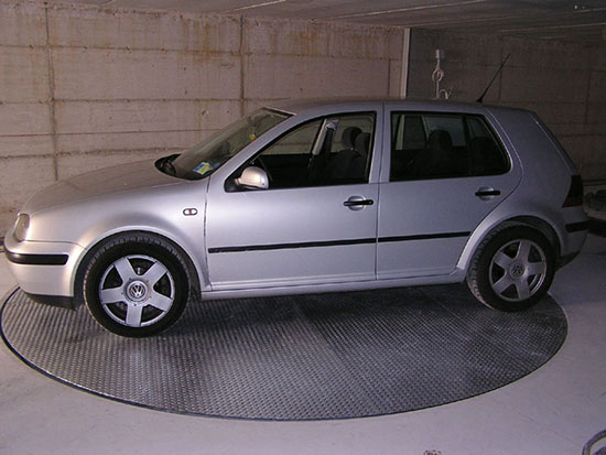 该设备为立体车库之附属设备,设置于汽车库内或车库门外,使汽车在其上任意旋转方向,方便车辆出入。也可用于展示汽车的展位。