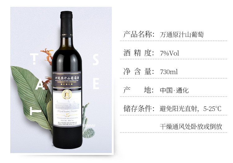 通化甜葡萄酒万通原汁山葡萄酒低度女生晚安发酵红酒微醺小酌