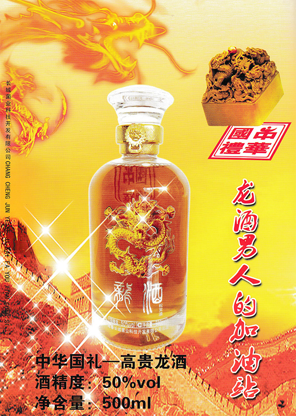 玄宗皇帝得知这种酒是由松茸、灵芝、柏树、杏鲍菇等10余种蘑菇,历经四季浸泡,才酿制出如此美酒时,不由得发自肺腑地感叹道:“龙口呈龙酒,异族献‘神酒’,天下心归一,真乃我大唐之幸事也。”故钦赐此酒为“龙酒”,并令御医又添加了天南地北近十种上好的御用食材,酿造出了更加甘美的宫廷御用“龙酒”。