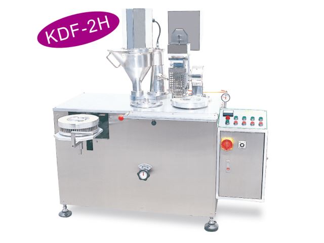 KDF-2H是光大公司生产数千台直立套合式半自动胶囊充填机后,集数十年生产制造之经验,进一步改良设计,推出其改良型水平套合式半自动胶囊充填机KDF-2H,该机种除了操作上更便利、安全外;对于流动性好的粉末及颗粒充填大大提升其效率,并降低胶囊损失率。