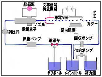 油墨由油墨供應幫浦加壓,經調壓閥從噴嘴射出。