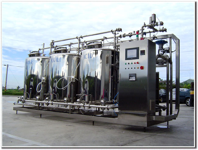 CIP中心主要是提供調配系統或填充機使用, CIP中心設計有Water、酸、鹼三個Storage Tank以便儲存回收使用。本系統中裝設有導電度計,可偵測酸鹼濃度,並啟動或停止酸鹼供應泵浦,達到使用者設定濃度。而且當清水沖洗後可確保酸鹼沒有殘留於管路內。其內並設有板式加熱器,可依需求提供所需溫度。本CIP中心為開放系統,可提供調配系統或填充機使用。