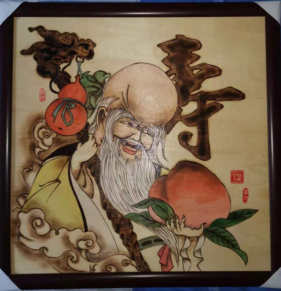 木板烫画 寿比南山
