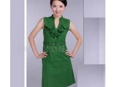 绿色立领荷叶边腰带连衣裙4060