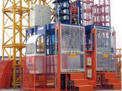 有单笼和双笼的施工升降机:单笼的升降机如增加一个吊笼和其他零件后即可成为双笼升降机。